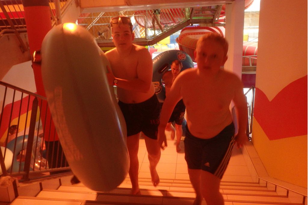 Nach diesem ersten erfolgreichen Sieg, ging es blitzschnell. Umziehen, abduschen und die Übernahme des Badeparadieses begann. Auf insgesamt 16 Rutschen, 20 Attraktionen und dem super Wellenbad ging es so richtig rund.