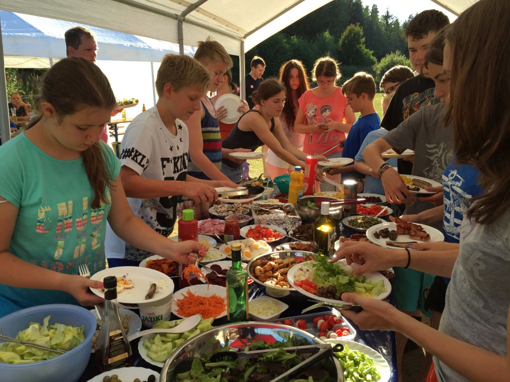Essen: Frühstück:Zeltlagerfrühstück Mittagessen:Wurst und Weck und leckerer Obstnachtisch Abendessen:Salatbar Deluxe |