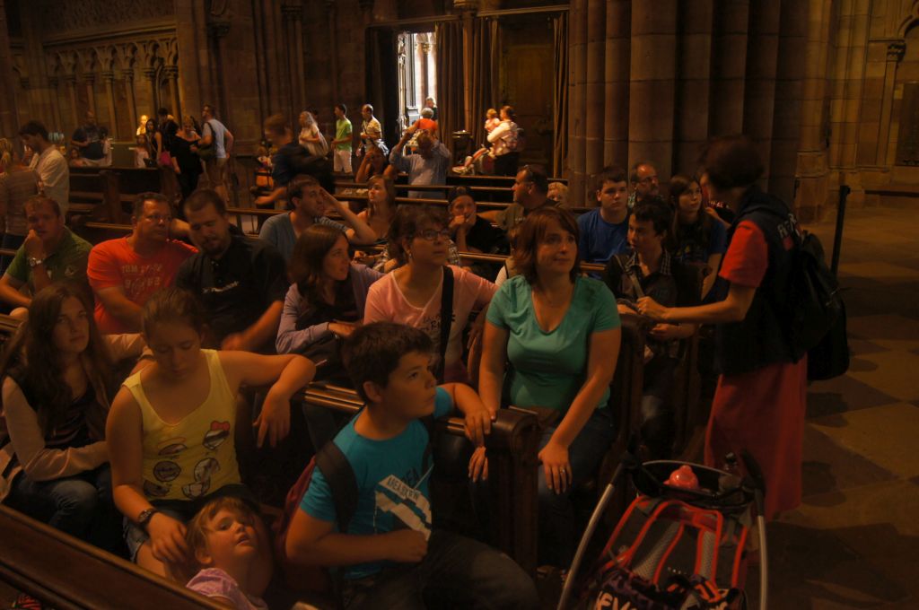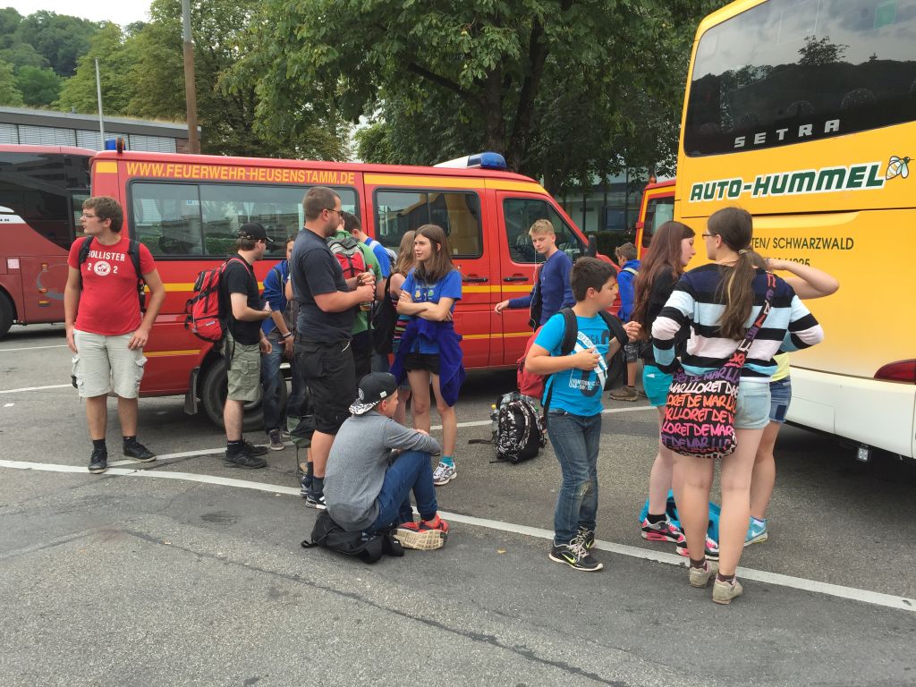 Der Tag heute begann für alle sehr früh. Bereits um 7.00 Uhr klingelte die berühmt-berüchtigte Zeltlagerglocke, um zum Frühstück zu rufen. Nach einem gemütlichen Frühstück wurden geschwind die Lunchpakete und die Rucksäcke für diesen langen Tag gepackt, sodass alle pünktlich um 8.30 Uhr zur Abfahrt bereit standen. Gegen 10.00 Uhr trafen wir nun an einem Busparkplatz in Freiburg ein. Von dort aus startete unsere eineinhalbstündige Stadtführung „Gässle, Bächle und das Münster“. Bei einem Rundgang durch die Altstadt lernten wir sehenswerte Plätze, Straßen und Häuser kennen (Martinstor, Rathaus, Bauernmarkt, Straßenmosaike,…). Zudem besichtigten wir das Münster und lernten einiges Wissenswertes über die mittelalterlichen, Geschichten erzählenden Fenster. Zudem lernten wir eine alte Freiburger Regel kennen, nach der Auswärtige verpflichtet seien, eine/n Freiburger/in zu heiraten, wenn sie aus Versehen in ein Bächle im Gässle „dappen“. Nach der Führung standen nun 2 Stunden Freizeit im Programm. Die Zeit wurde genutzt, um zu shoppen, Eis zu essen, zu bummeln und im Biergarten zu sitzen. Danach fuhren wir Richtung Titisee-Neustadt. Vom Bahnhofsparkplatz aus, liefen wir ein paar Minuten zum See. Dort wurden nun Tretboote ausgeliehen, am See entlang spaziert, eine Bratwurst verspeist, gelesen oder im See geplanscht. Um halb sechs trafen wir uns wieder, um gemeinsam zur Pizzeria Castello zu laufen. Nachdem wir uns dort gesättigt hatten, machten wir uns wieder gen Heimatzeltplatz. Dort versammelten wir uns zur Besprechung des morgigen Tages und der Auslosung des Küchendienstes für den nächsten Tag. Einige Freiwillige spülten das Geschirr und schließlich ließen wir den Tag gemütlich am Lagerfeuer mit Marshmallows und Stockbrot ausklingen.