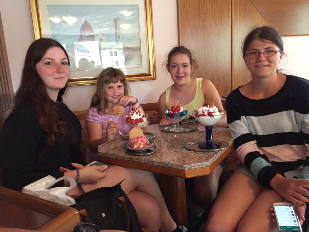 Eine dankbare Abwechslung war am Nachmittag der gemeinsame Ausflug zur örtlichen Eisdiele, wo man sich mit Eisbechern und Eiskaffees verköstigte.