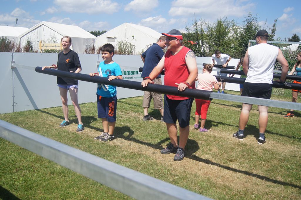 Dank unserer Zeltnachbarn konnten wir den von der KJG mitgebrachten XXL-Menschen-Kicker nutzen, der direkt neben unserem Zeltplatz steht, so dass wir ein kleines Highlight anbieten konnten. Nach vier Partien konnte sich die „Kreuz-Mannschaft“ durchsetzen und die Führung übernehmen.